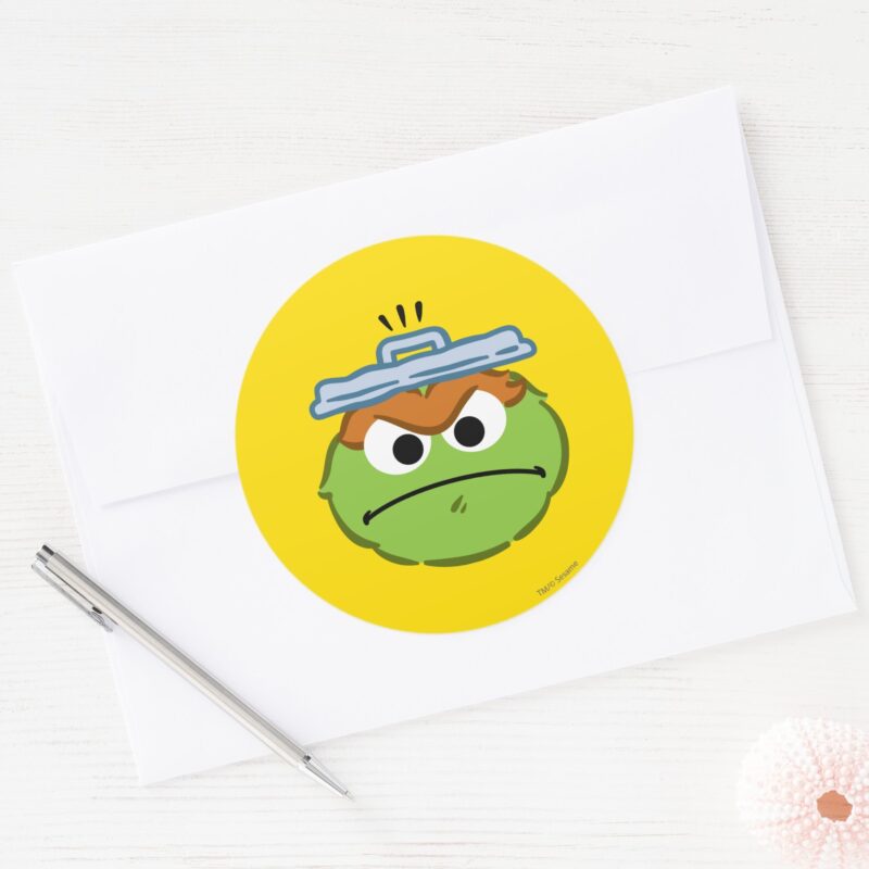 Oscar Angry Face Classic Round Sticker vinyl sticker, waterproof durable collectible sticker for laptop, phone, bottle, bike, notebook, helmet, and accessories.