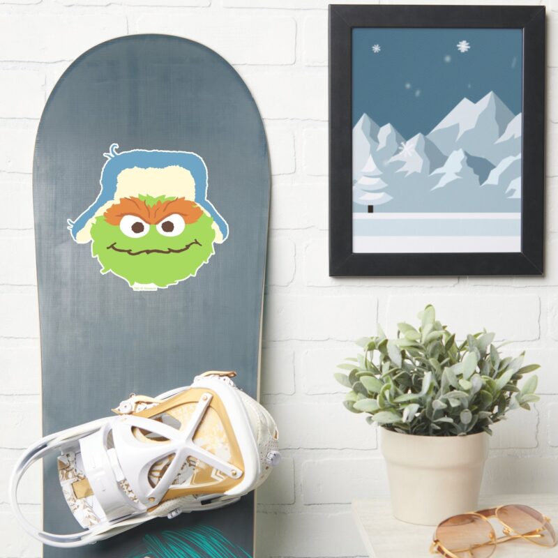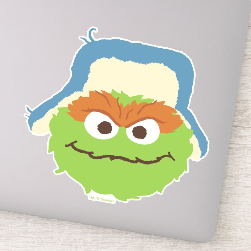 Oscar The Grouch Woodland Face Sticker vinyl sticker, waterproof durable collectible sticker for laptop, phone, bottle, bike, notebook, helmet, and accessories.