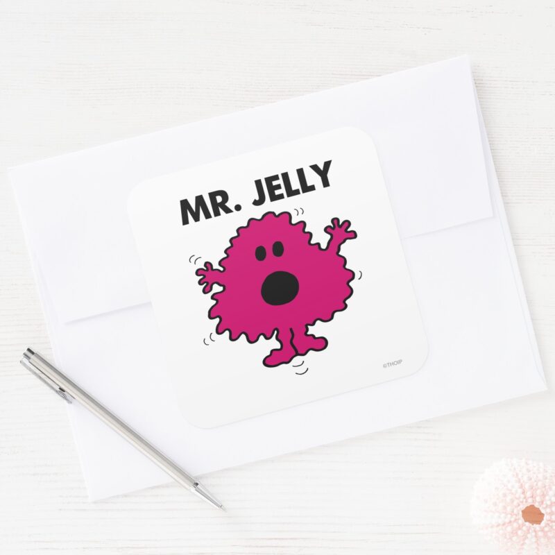 Scared Nervous Mr. Jelly Square Sticker vinyl sticker, waterproof durable collectible sticker for laptop, phone, bottle, bike, notebook, helmet, and accessories.