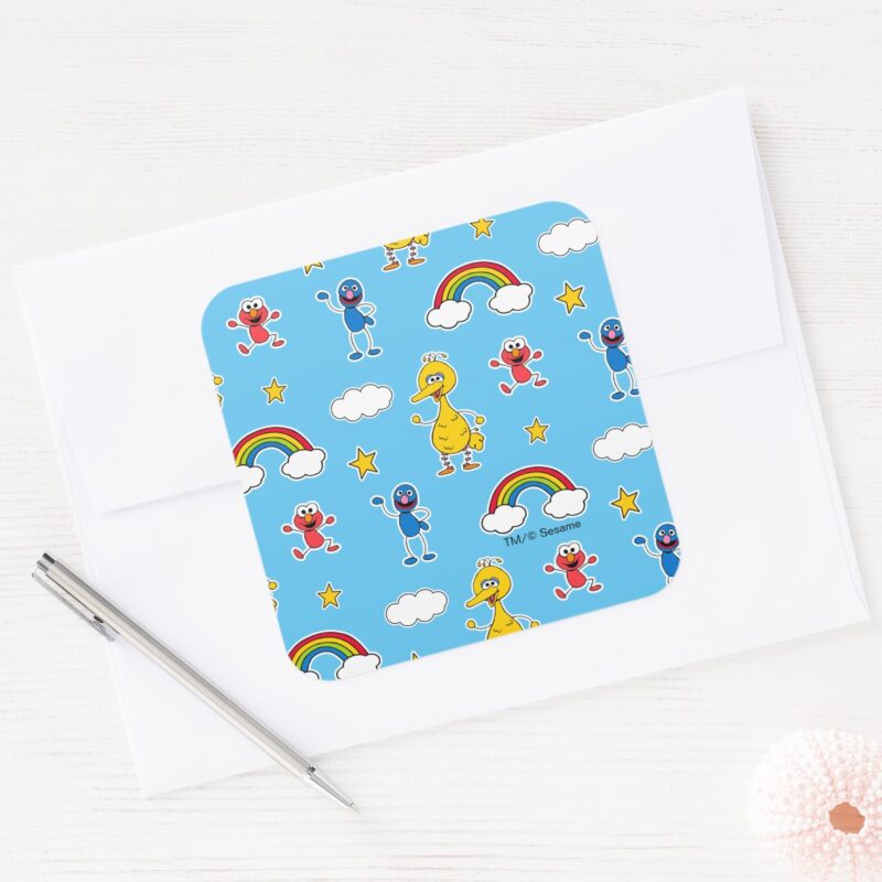 Sesame Pals Rainbow Doodley Pattern Square Sticker