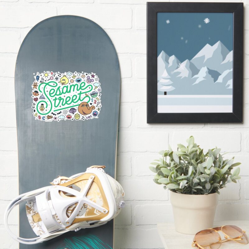 Sesame Sesame Sesame Street Green Doodle Script Sticker vinyl sticker, waterproof durable collectible sticker for laptop, phone, bottle, bike, notebook, helmet, and accessories.