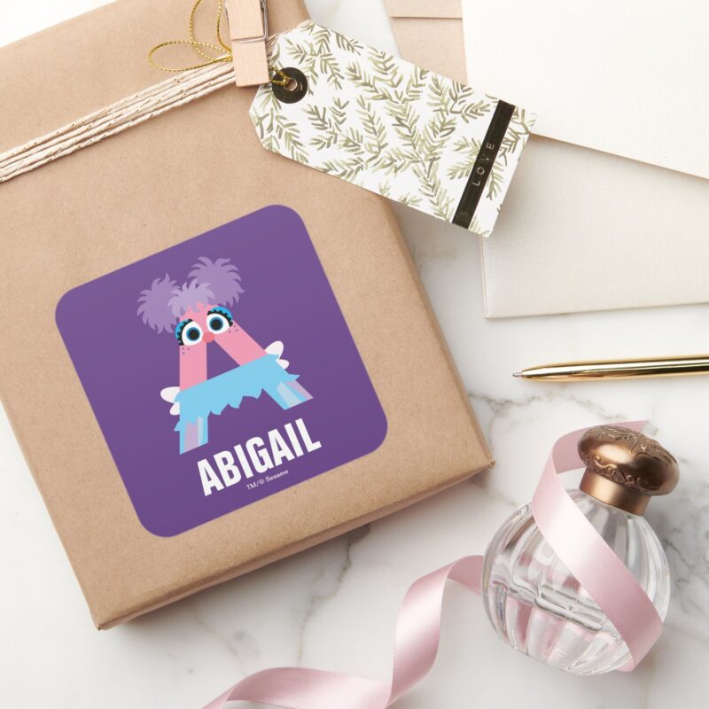 Sesame Street A Is For Abby Square Sticker vinyl sticker, waterproof durable collectible sticker for laptop, phone, bottle, bike, notebook, helmet, and accessories.
