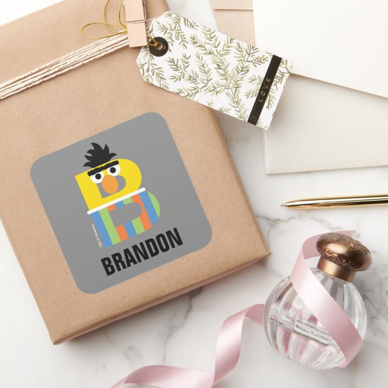 Sesame Street B Is For Bert Square Sticker vinyl sticker, waterproof durable collectible sticker for laptop, phone, bottle, bike, notebook, helmet, and accessories.