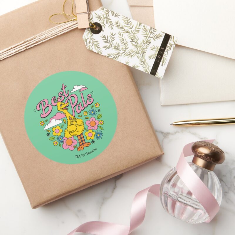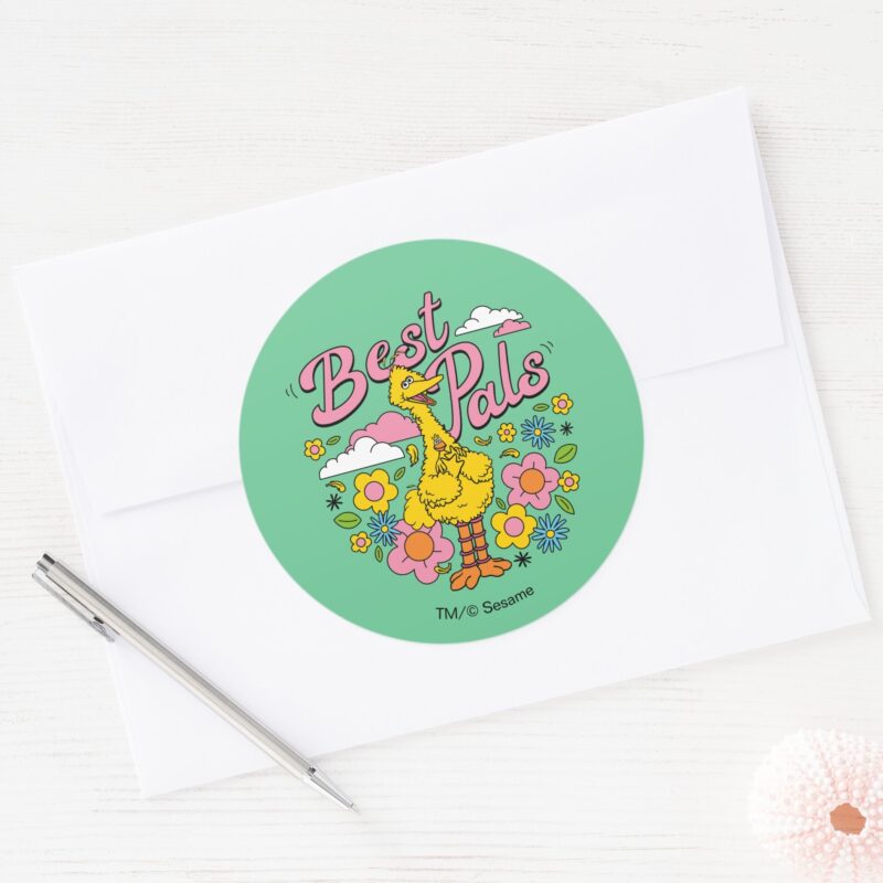 Sesame Street Best Yellow Bird Pals Classic Round Sticker vinyl sticker, waterproof durable collectible sticker for laptop, phone, bottle, bike, notebook, helmet, and accessories.