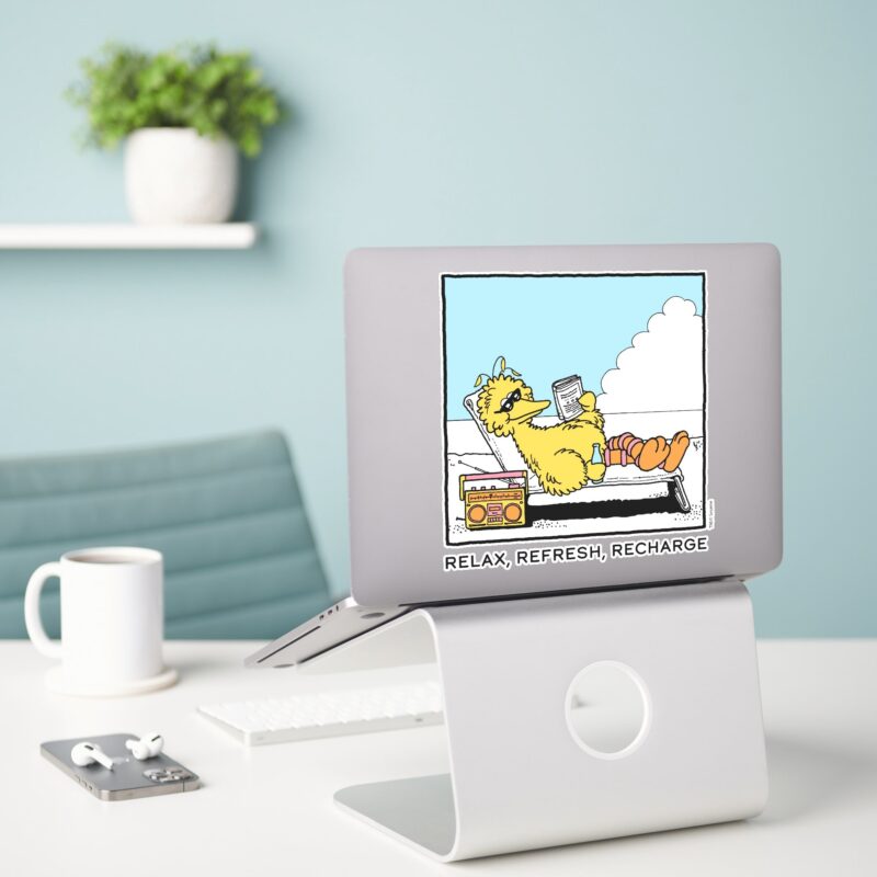 Sesame Street Big Bird Relax Refresh Recharge Sticker vinyl sticker, waterproof durable collectible sticker for laptop, phone, bottle, bike, notebook, helmet, and accessories.