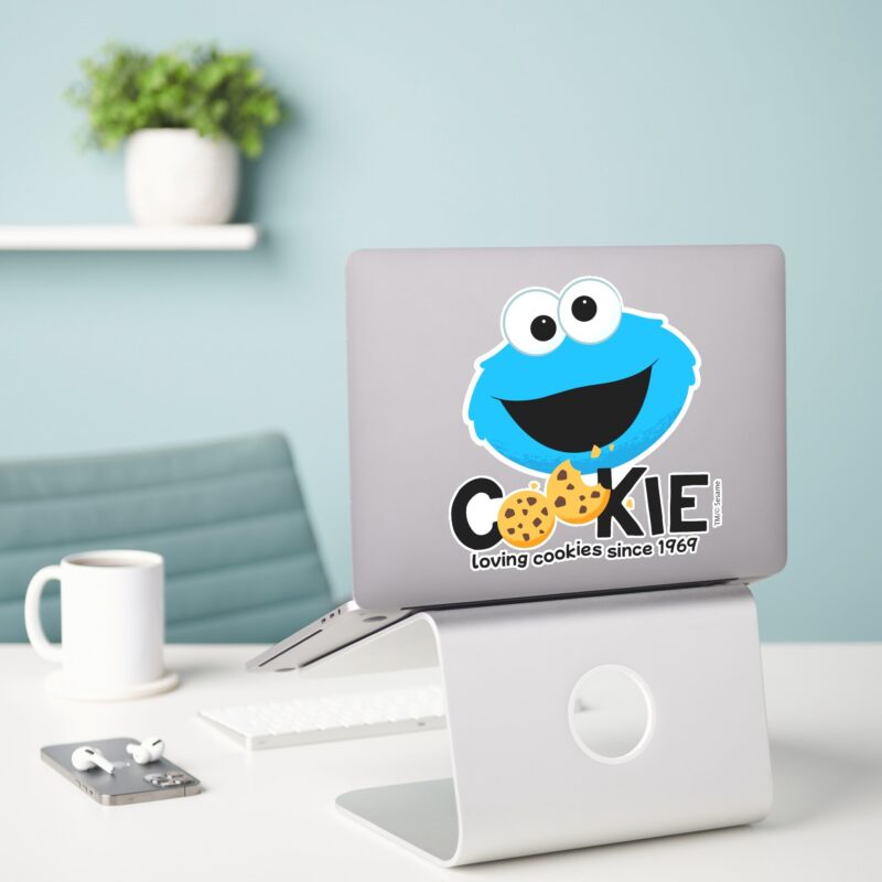 Sesame Street Cookie Monster Loving Cookies Sticker vinyl sticker, waterproof durable collectible sticker for laptop, phone, bottle, bike, notebook, helmet, and accessories.