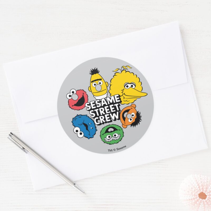 Sesame Street Crew Classic Round Sticker vinyl sticker, waterproof durable collectible sticker for laptop, phone, bottle, bike, notebook, helmet, and accessories.
