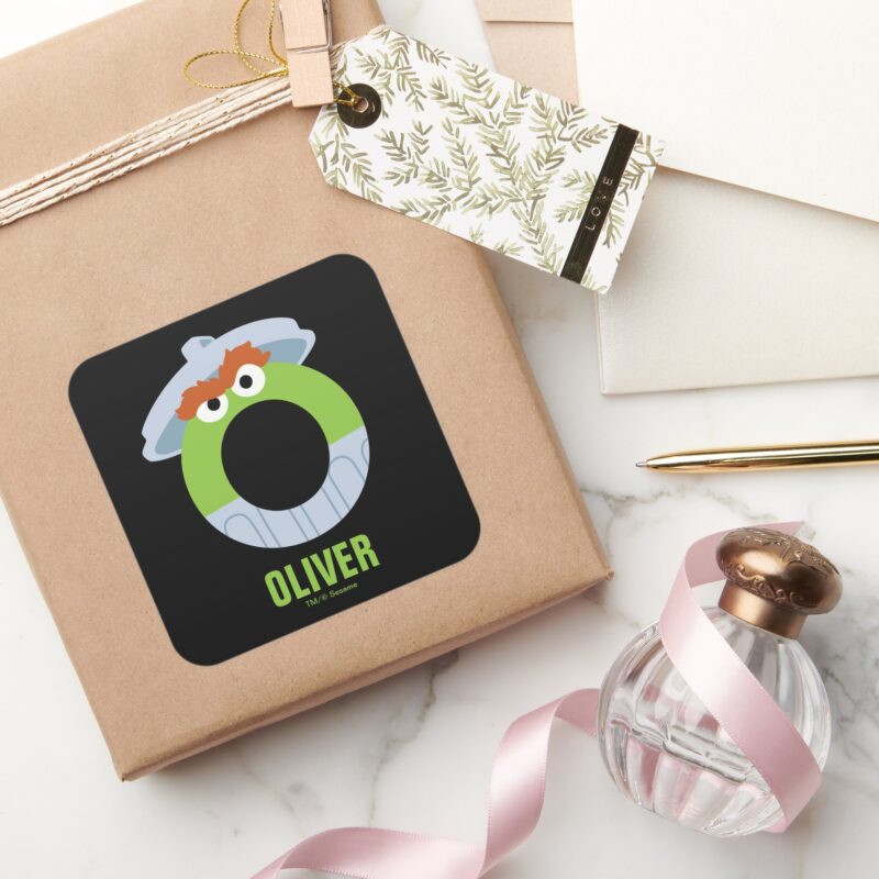 Sesame Street O Is For Oscar Square Sticker vinyl sticker, waterproof durable collectible sticker for laptop, phone, bottle, bike, notebook, helmet, and accessories.