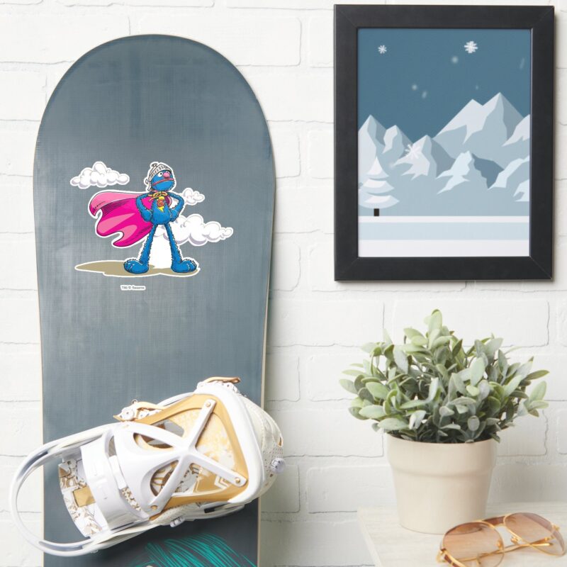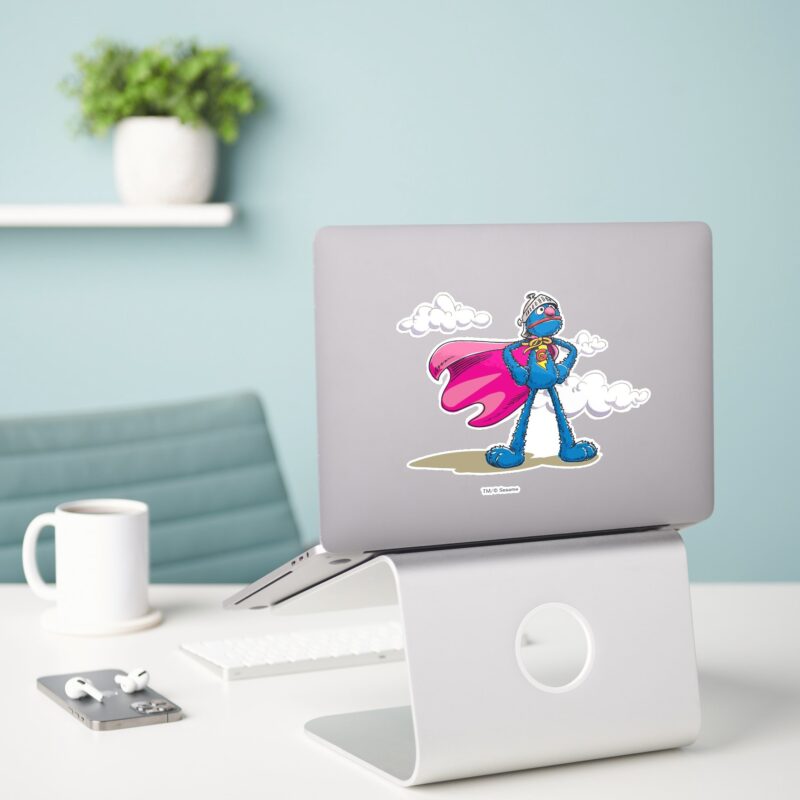 Sesame Street Super Grover Sticker vinyl sticker, waterproof durable collectible sticker for laptop, phone, bottle, bike, notebook, helmet, and accessories.