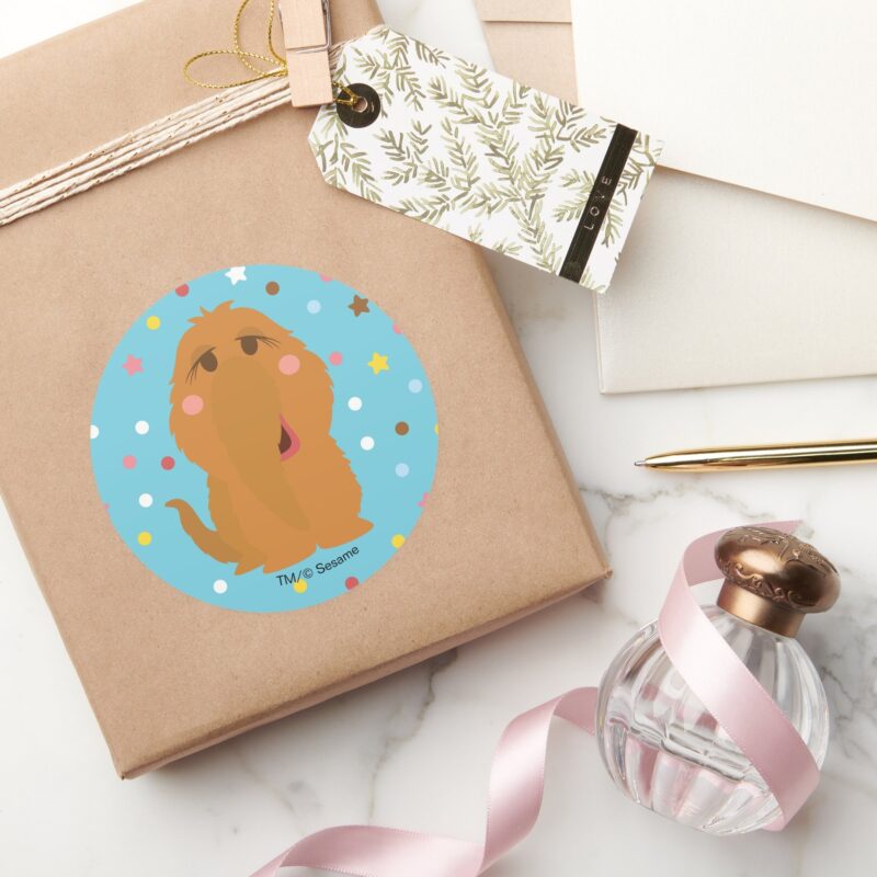 Snuffleupagus Blue Stars Dots Pattern Classic Round Sticker vinyl sticker, waterproof durable collectible sticker for laptop, phone, bottle, bike, notebook, helmet, and accessories.
