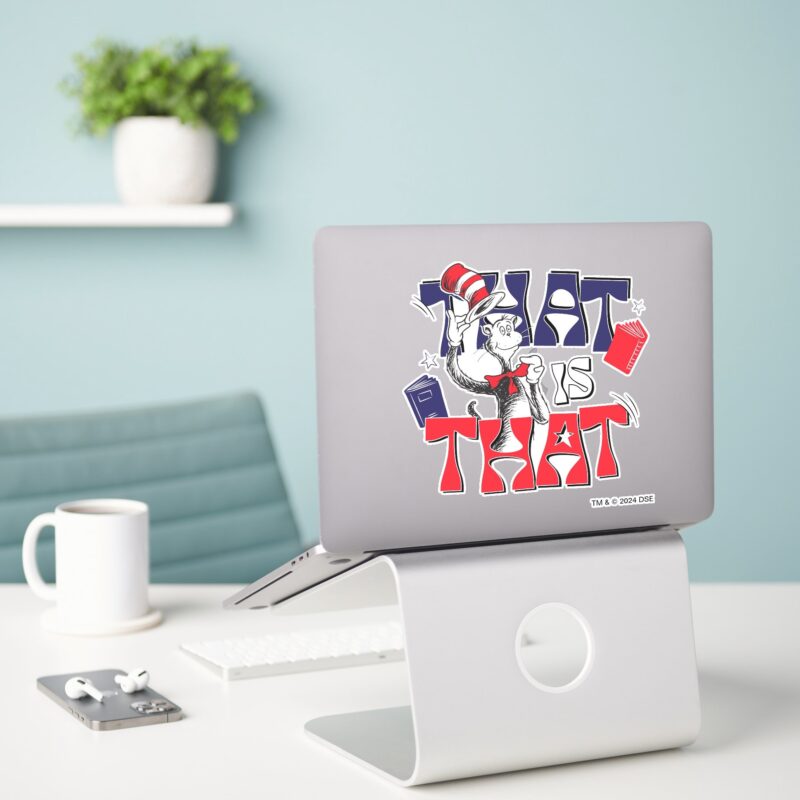 Cat In The Hat That Is That Sticker vinyl sticker, waterproof durable collectible sticker for laptop, phone, bottle, bike, notebook, helmet, and accessories.