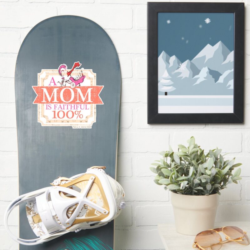 Dr. Seuss A Mom Is Faithful 100 Sticker vinyl sticker, waterproof durable collectible sticker for laptop, phone, bottle, bike, notebook, helmet, and accessories.