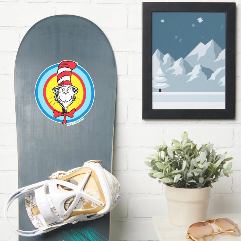 Dr. Seuss Cat In The Hat Head Graphic Sticker vinyl sticker, waterproof durable collectible sticker for laptop, phone, bottle, bike, notebook, helmet, and accessories.