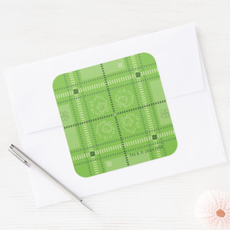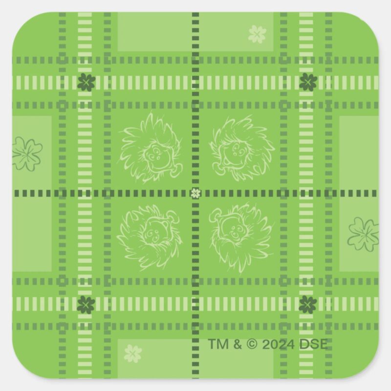 Dr. Seuss St. Patricks Day Plaid Pattern Square Sticker