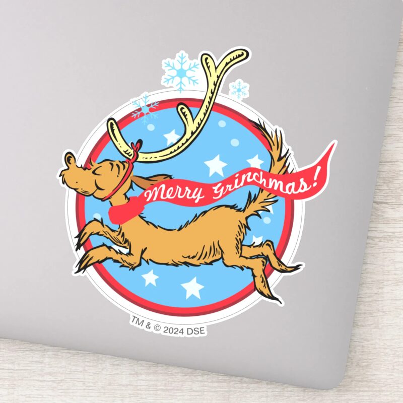 Grinch Max Merry Grinchmas Sticker vinyl sticker, waterproof durable collectible sticker for laptop, phone, bottle, bike, notebook, helmet, and accessories.