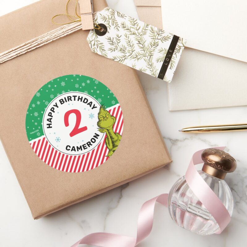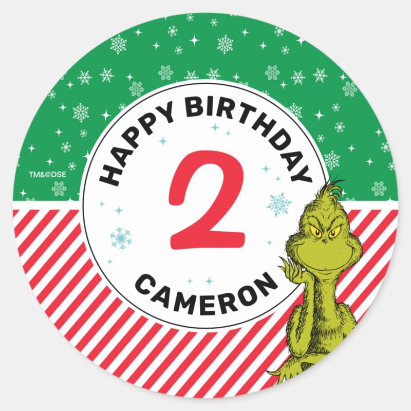 Grinch Red And Green Snowflake Birthday Classic Round Sticker