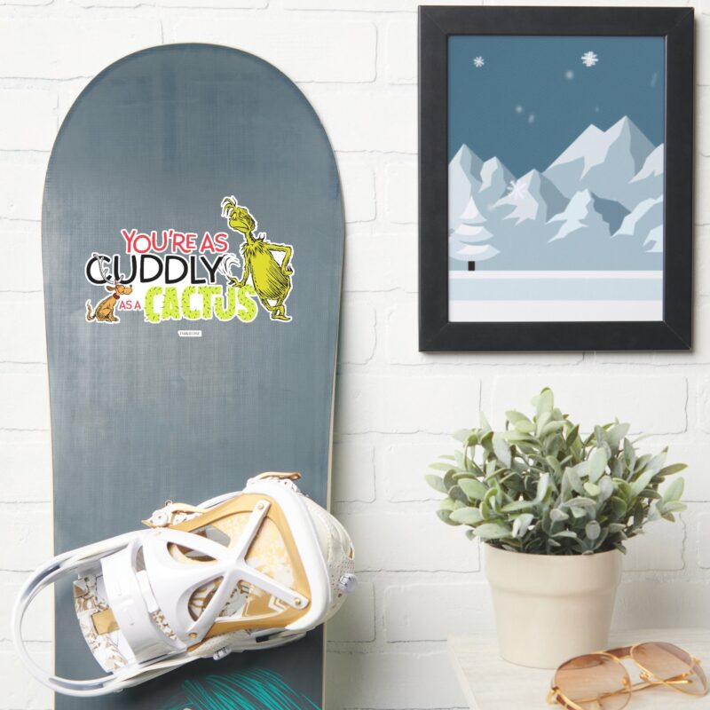 Grinch Youre As Cuddly As A Cactus Quote Sticker vinyl sticker, waterproof durable collectible sticker for laptop, phone, bottle, bike, notebook, helmet, and accessories.