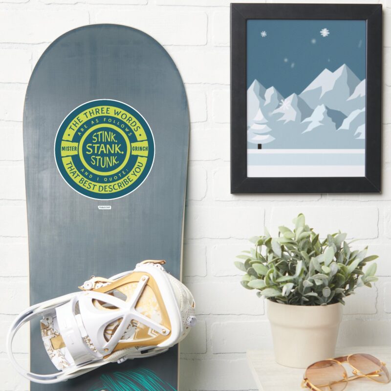 Mister Grinch Stink Stank Stunk Quote Sticker vinyl sticker, waterproof durable collectible sticker for laptop, phone, bottle, bike, notebook, helmet, and accessories.