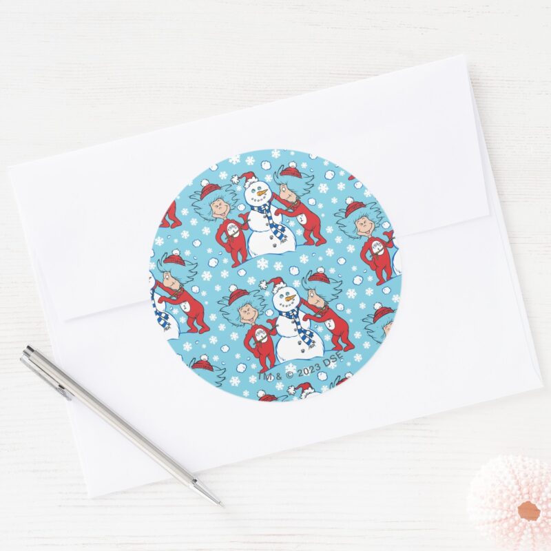 Thing One Thing Two Snowman Pattern Classic Round Sticker