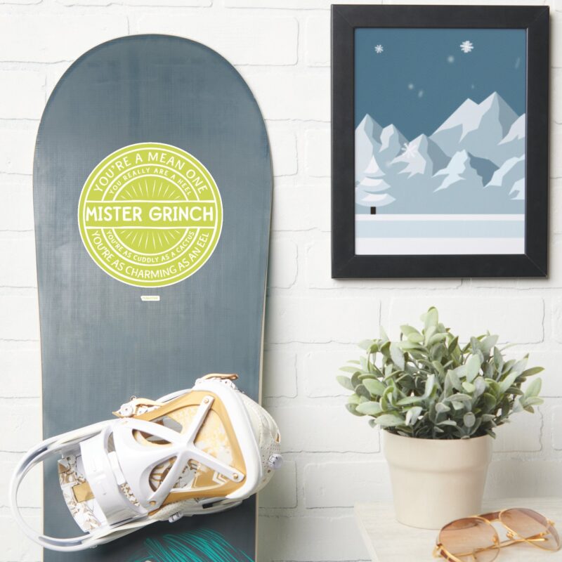 Youre A Mean One Mister Grinch Quote Sticker vinyl sticker, waterproof durable collectible sticker for laptop, phone, bottle, bike, notebook, helmet, and accessories.