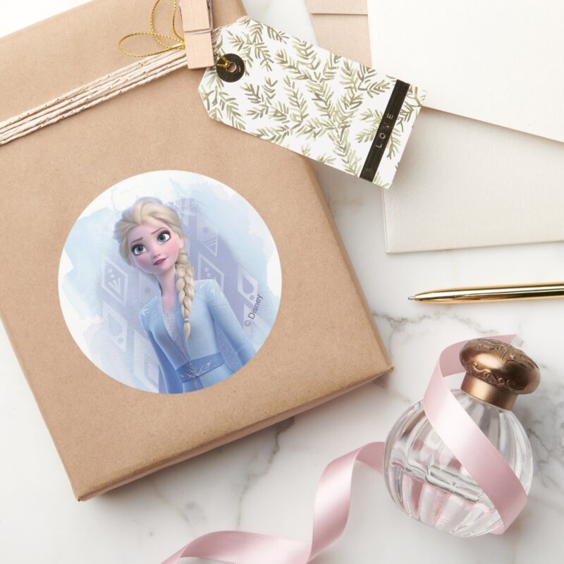 Frozen 2 Elsa Face Your Fear Classic Round Sticker vinyl sticker, waterproof durable collectible sticker for laptop, phone, bottle, bike, notebook, helmet, and accessories.