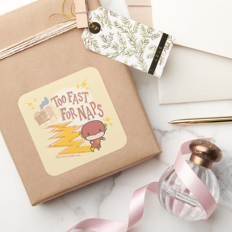 Chibi Flash Too Fast For Naps Square Sticker vinyl sticker, waterproof durable collectible sticker for laptop, phone, bottle, bike, notebook, helmet, and accessories.