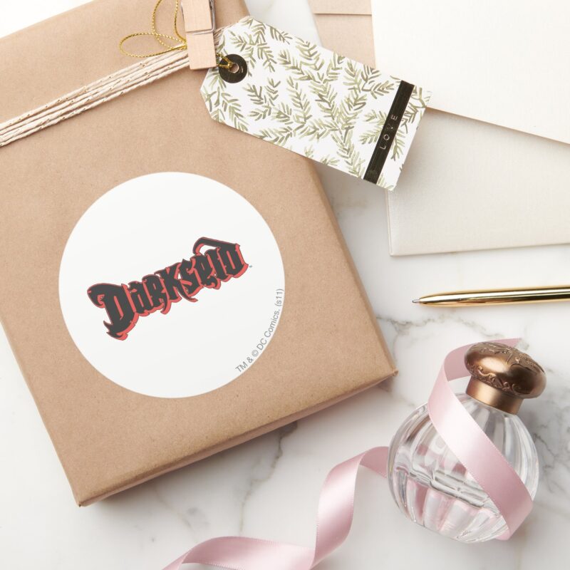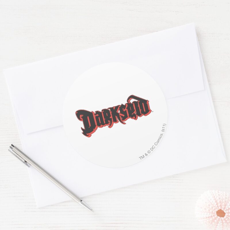 Darkseid Logo Classic Round Sticker vinyl sticker, waterproof durable collectible sticker for laptop, phone, bottle, bike, notebook, helmet, and accessories.