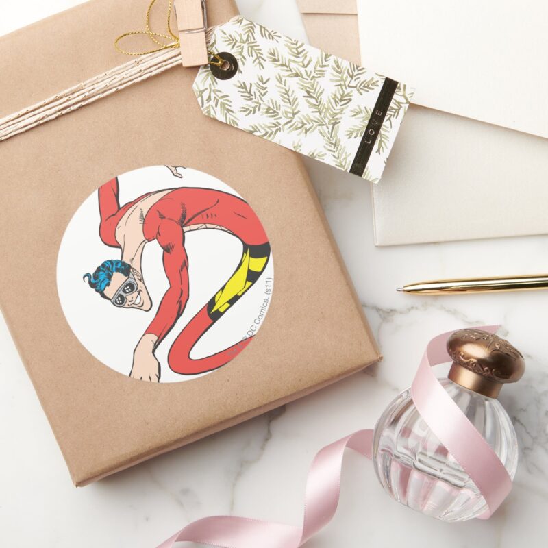 Plastic Man Shape Shifts Classic Round Sticker vinyl sticker, waterproof durable collectible sticker for laptop, phone, bottle, bike, notebook, helmet, and accessories.