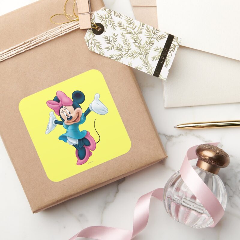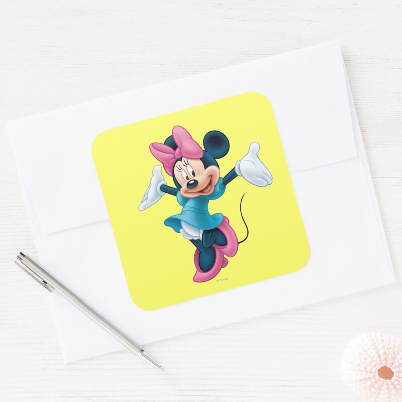 Blue Minnie Welcoming Hands Up Square Sticker vinyl sticker, waterproof durable collectible sticker for laptop, phone, bottle, bike, notebook, helmet, and accessories.