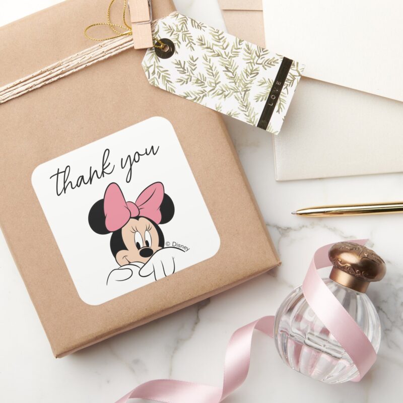 Disneys Minnie Mouse Polka Dot Girls Birthday Square Sticker