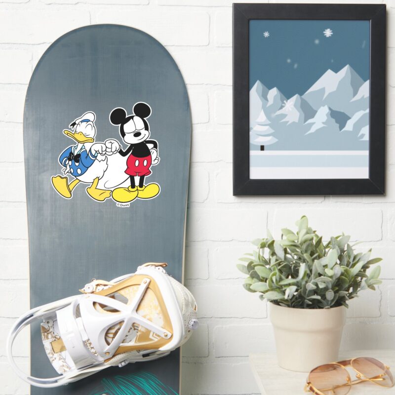 Donald Duck Mickey Fist Bump Sticker vinyl sticker, waterproof durable collectible sticker for laptop, phone, bottle, bike, notebook, helmet, and accessories.