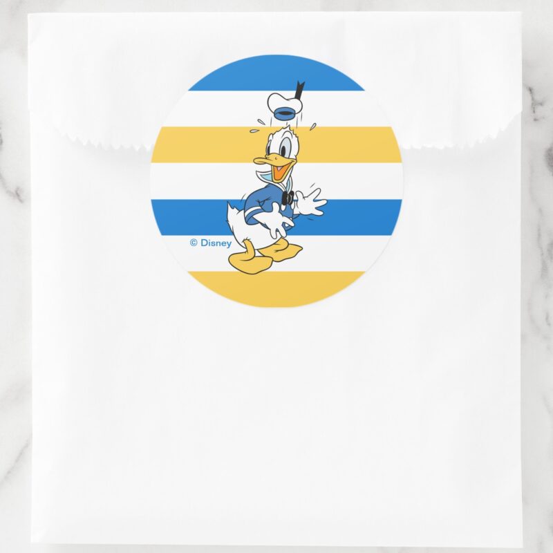 Donald Duck Surprise Classic Round Sticker vinyl sticker, waterproof durable collectible sticker for laptop, phone, bottle, bike, notebook, helmet, and accessories.
