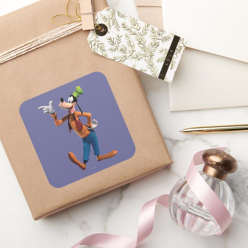 Goofy Pointing Square Sticker vinyl sticker, waterproof durable collectible sticker for laptop, phone, bottle, bike, notebook, helmet, and accessories.