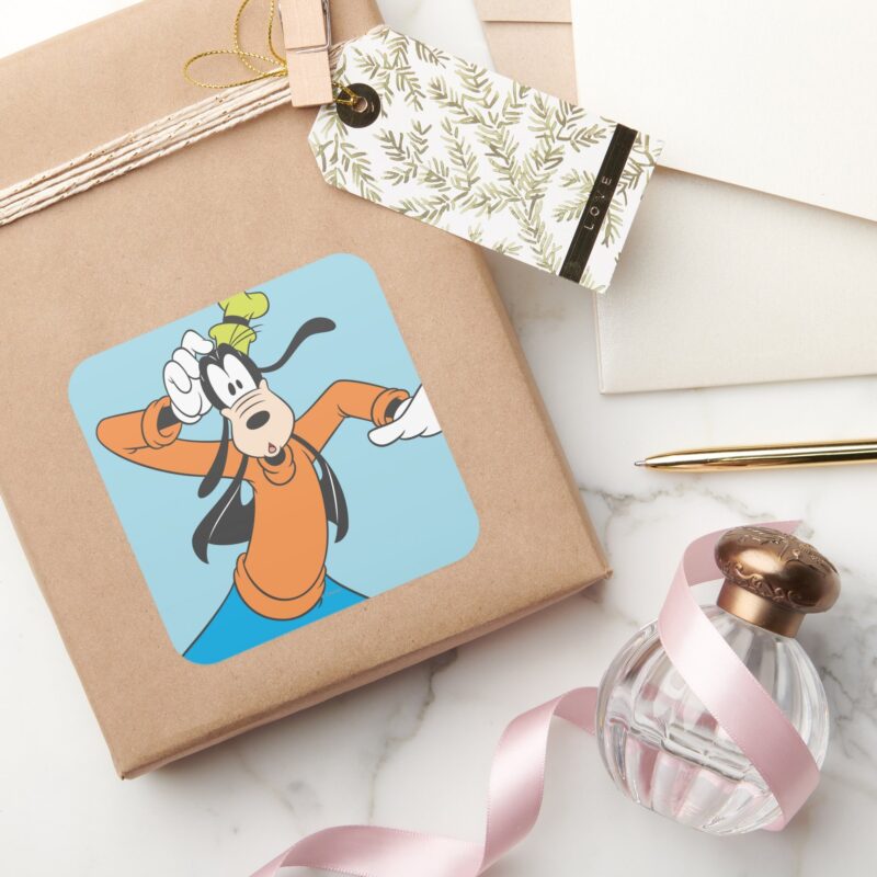 Goofy Scratching Head Square Sticker vinyl sticker, waterproof durable collectible sticker for laptop, phone, bottle, bike, notebook, helmet, and accessories.