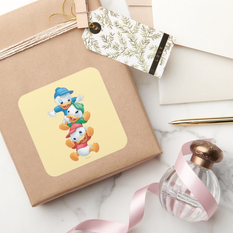 Huey Dewey And Louie Stacked Square Sticker vinyl sticker, waterproof durable collectible sticker for laptop, phone, bottle, bike, notebook, helmet, and accessories.