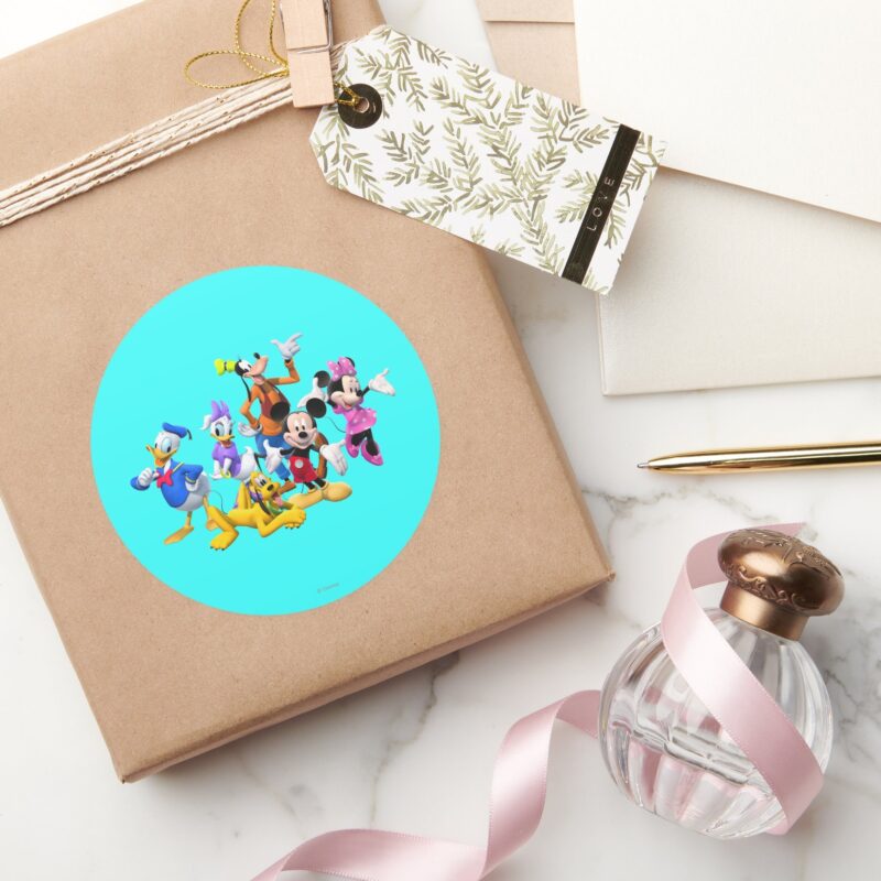 Mickey Friends Clubhouse Classic Round Sticker vinyl sticker, waterproof durable collectible sticker for laptop, phone, bottle, bike, notebook, helmet, and accessories.