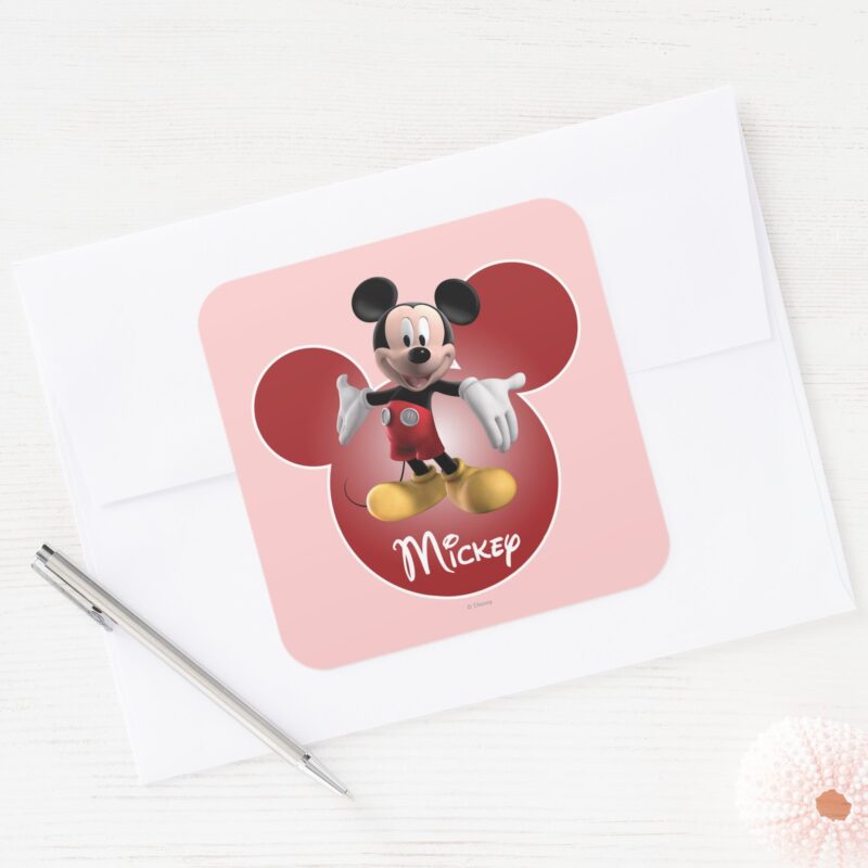 Mickey Mickey Clubhouse Head Icon Square Sticker vinyl sticker, waterproof durable collectible sticker for laptop, phone, bottle, bike, notebook, helmet, and accessories.