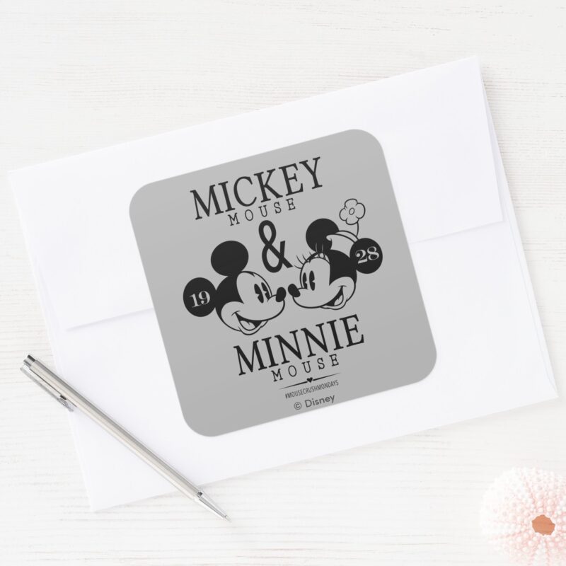 Mickey Minnie Est. 1928 Square Sticker vinyl sticker, waterproof durable collectible sticker for laptop, phone, bottle, bike, notebook, helmet, and accessories.