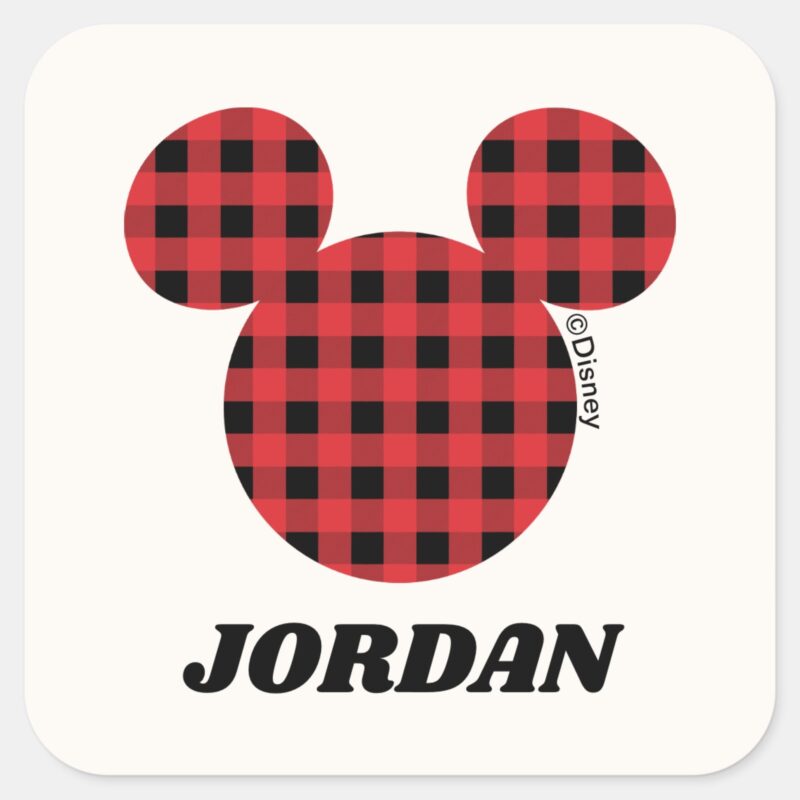 Mickey Mouse Buffalo Plaid Add Your Name Square Sticker vinyl sticker, waterproof durable collectible sticker for laptop, phone, bottle, bike, notebook, helmet, and accessories.