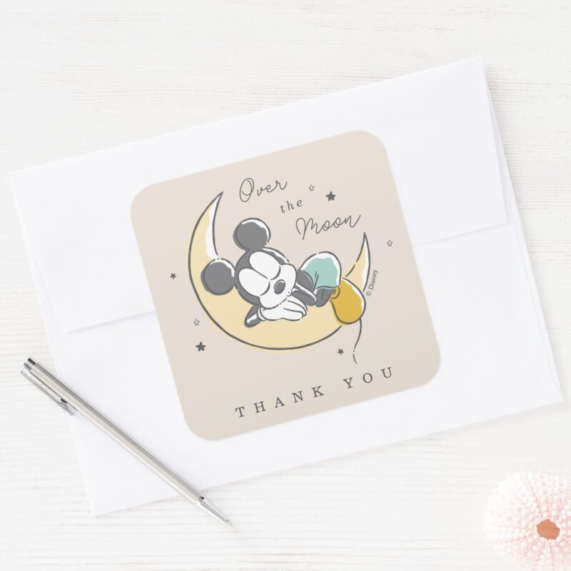 Mickey Mouse Over The Moon Thank You Square Sticker