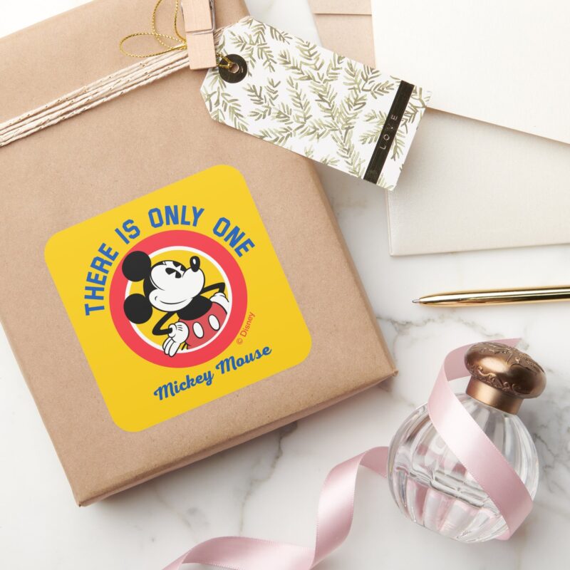Mickey Mouse There Is Only One Square Sticker vinyl sticker, waterproof durable collectible sticker for laptop, phone, bottle, bike, notebook, helmet, and accessories.