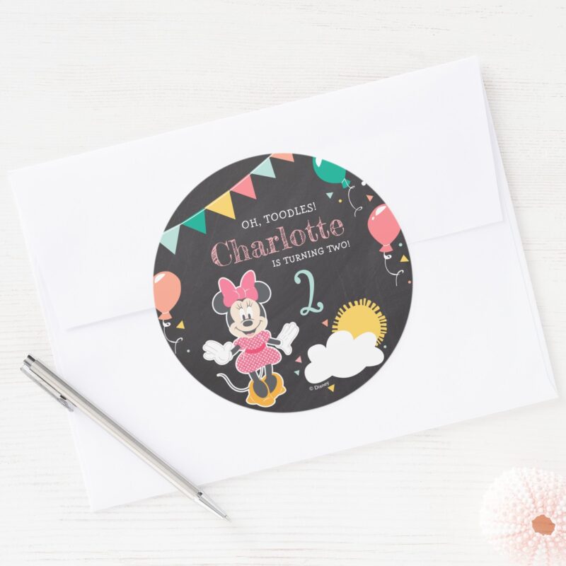 Minnie Mouse Chalkboard Birthday Classic Round Sticker vinyl sticker, waterproof durable collectible sticker for laptop, phone, bottle, bike, notebook, helmet, and accessories.