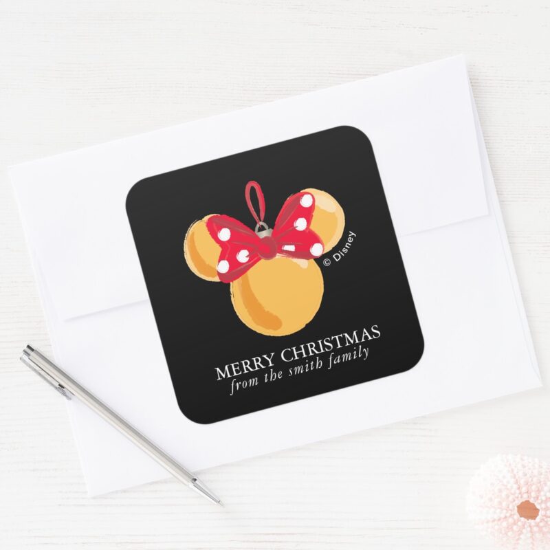 Minnie Mouse Christmas Ornament Personalized Square Sticker vinyl sticker, waterproof durable collectible sticker for laptop, phone, bottle, bike, notebook, helmet, and accessories.