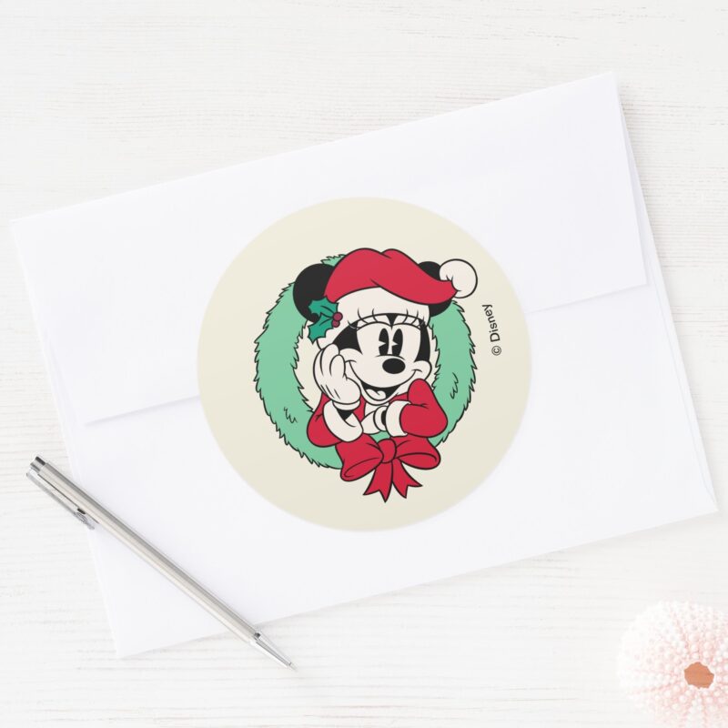 Minnie Mouse Cute Holiday Wreath Classic Round Sticker