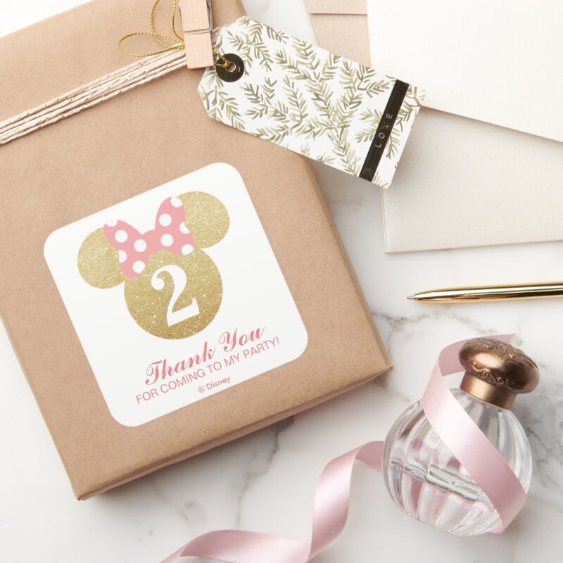 Minnie Mouse Gold Pink Thank You Square Sticker