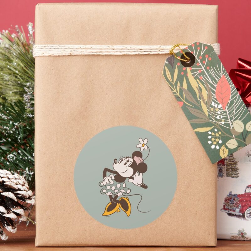 Minnie Mouse Minnie Strikes A Pose Classic Round Sticker vinyl sticker, waterproof durable collectible sticker for laptop, phone, bottle, bike, notebook, helmet, and accessories.