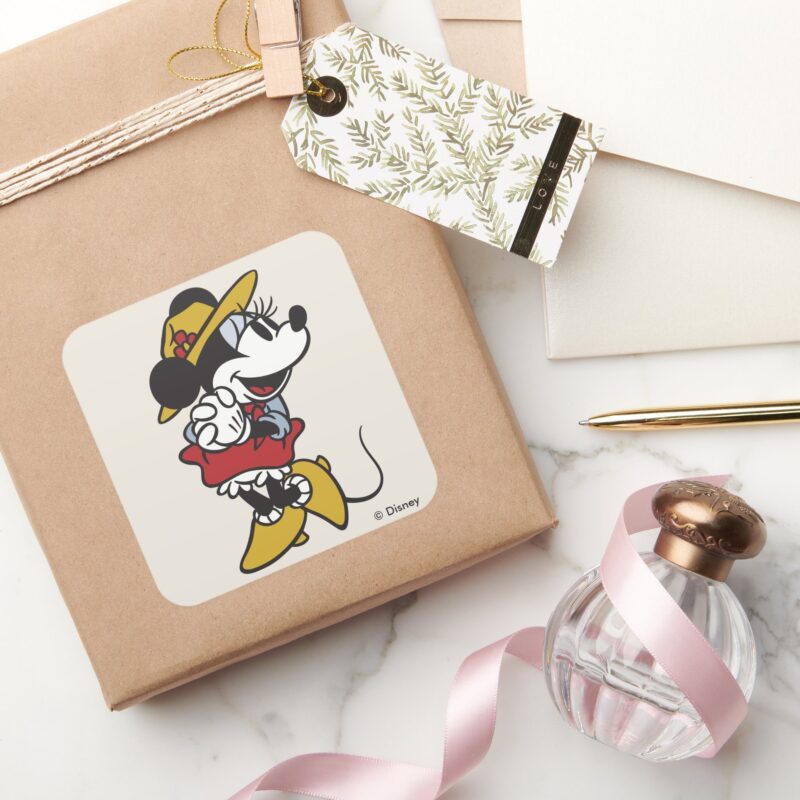 Minnie Mouse Outdoor Minnie Square Sticker vinyl sticker, waterproof durable collectible sticker for laptop, phone, bottle, bike, notebook, helmet, and accessories.