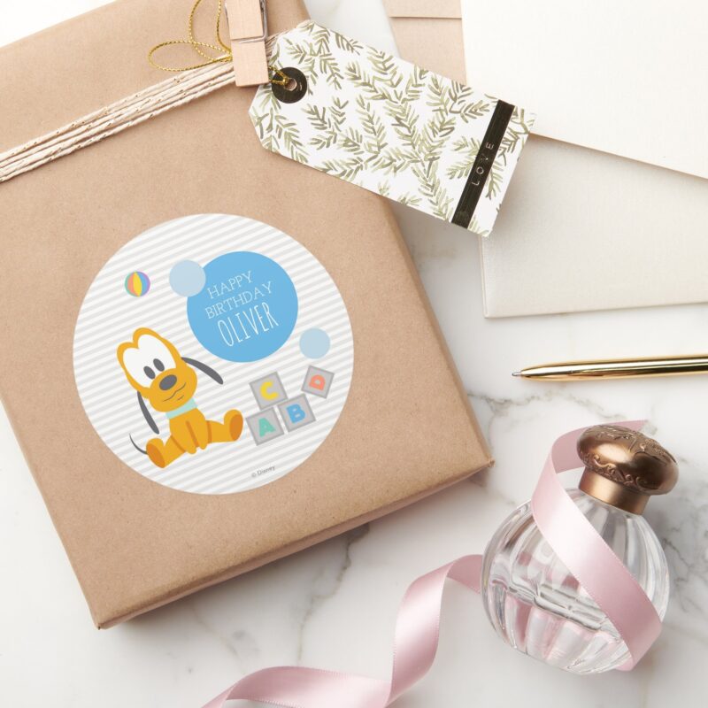Pluto First Birthday Classic Round Sticker