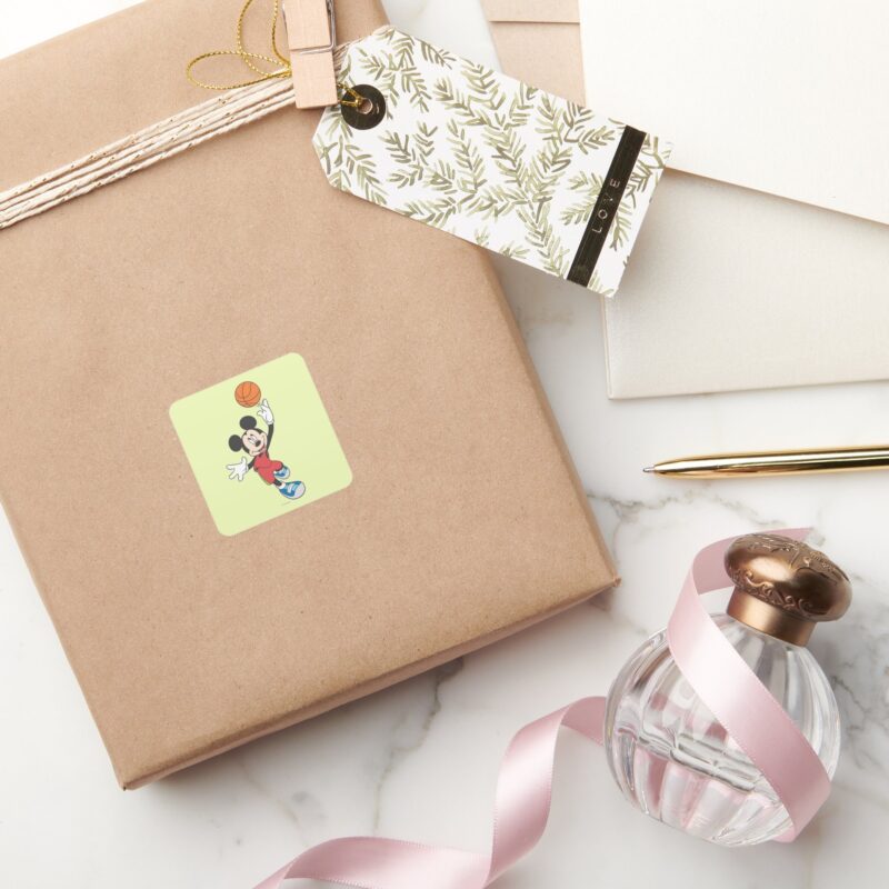 Sporty Mickey Throwing Basketball Square Sticker