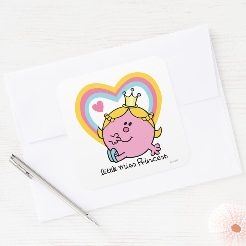 Little Miss Princess Hearts Square Sticker vinyl sticker, waterproof durable collectible sticker for laptop, phone, bottle, bike, notebook, helmet, and accessories.